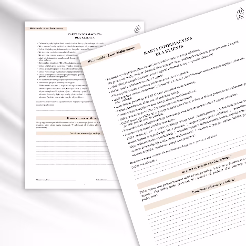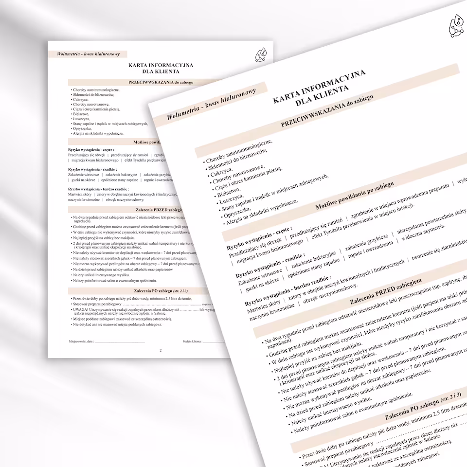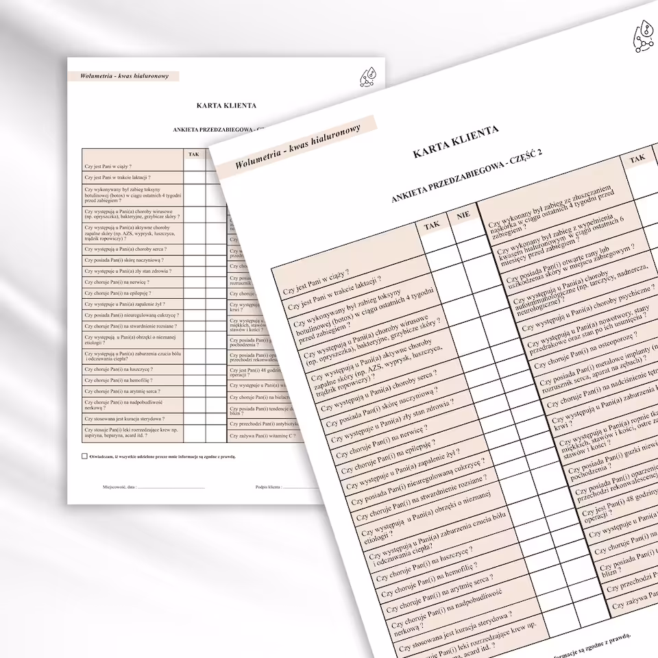Zgoda na zabieg / Formularze zgody / Karta Klienta / Ankieta medyczna / Wywiad kosmetyczny
